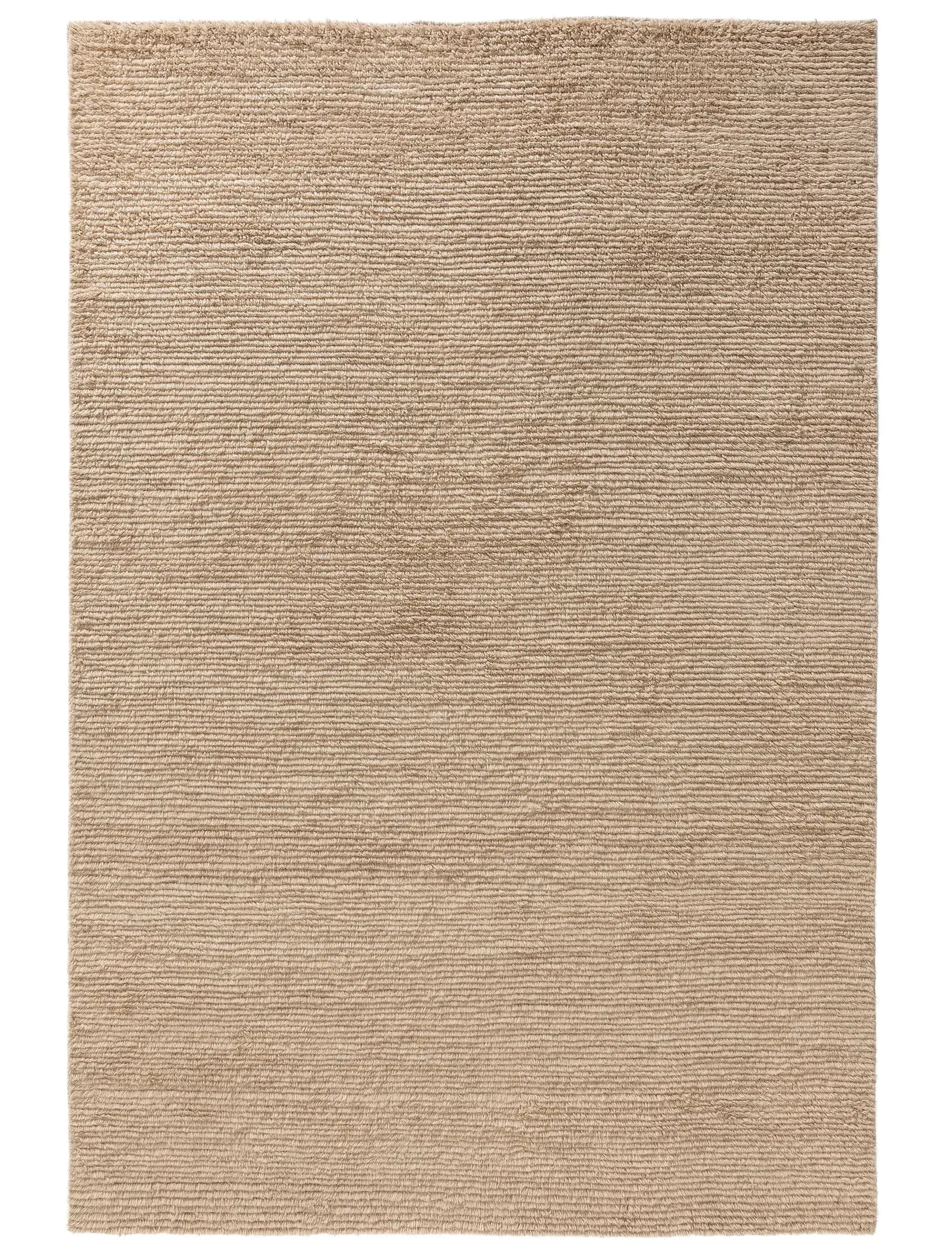 Bring understated luxury and natural comfort into your home with this elegant wool rug in a soothing beige tone. Crafted from a premium blend of 90% wool and 10% cotton, the rug has a refined hand-knotted construction that combines durability with softness underfoot.
