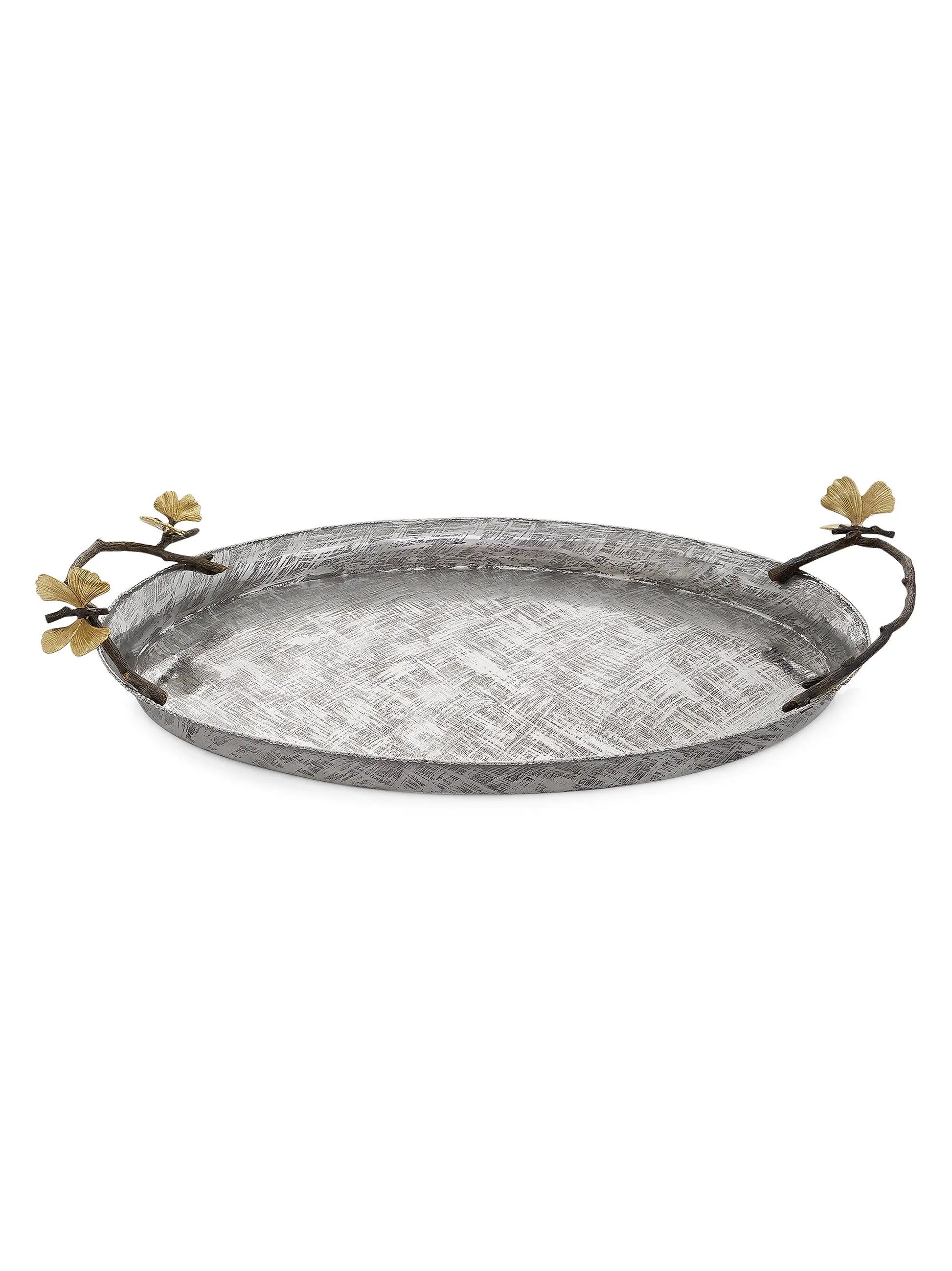 From the Butterfly Ginkgo Collection. The Butterfly Ginkgo collection celebrates the representation of flora as fauna. Michael's fascination with a particular type of ginkgo tree, the ginkgo biloba, or butterfly ginkgo, which grows with a double leaf reminiscent of a butterfly's wings, gave rise to a fantasia image of the plant. Executed at the highest level of handcraftsmanship, each piece is rendered in solid bronze with acid etched cocoon-shaped vessels. The pieces in the collection are a tour de force of Indian craft and capture the poetic spirit that is so deeply indicative of michael's work. The first time i saw this tree, it literally looked like it had been completely overtaken by butterflies. As if they would all take flight the moment i walked too close or made a noise. The idea that the leaves could evoke the beauty of butterflies was magical to me, like trees that can metamorphose from flora to fauna in the blink of an eye.