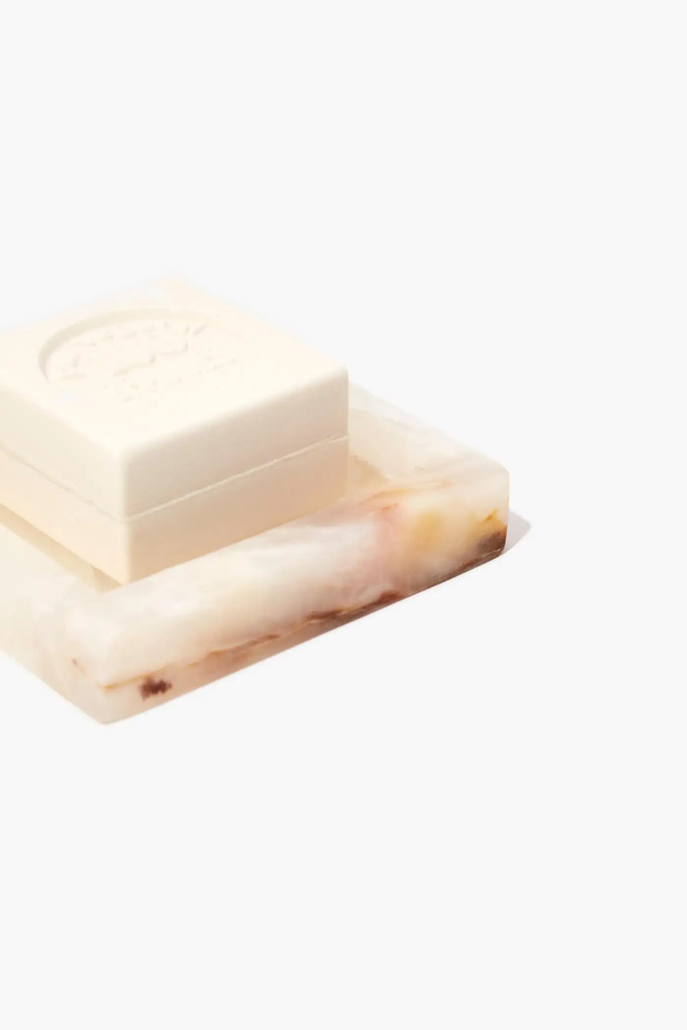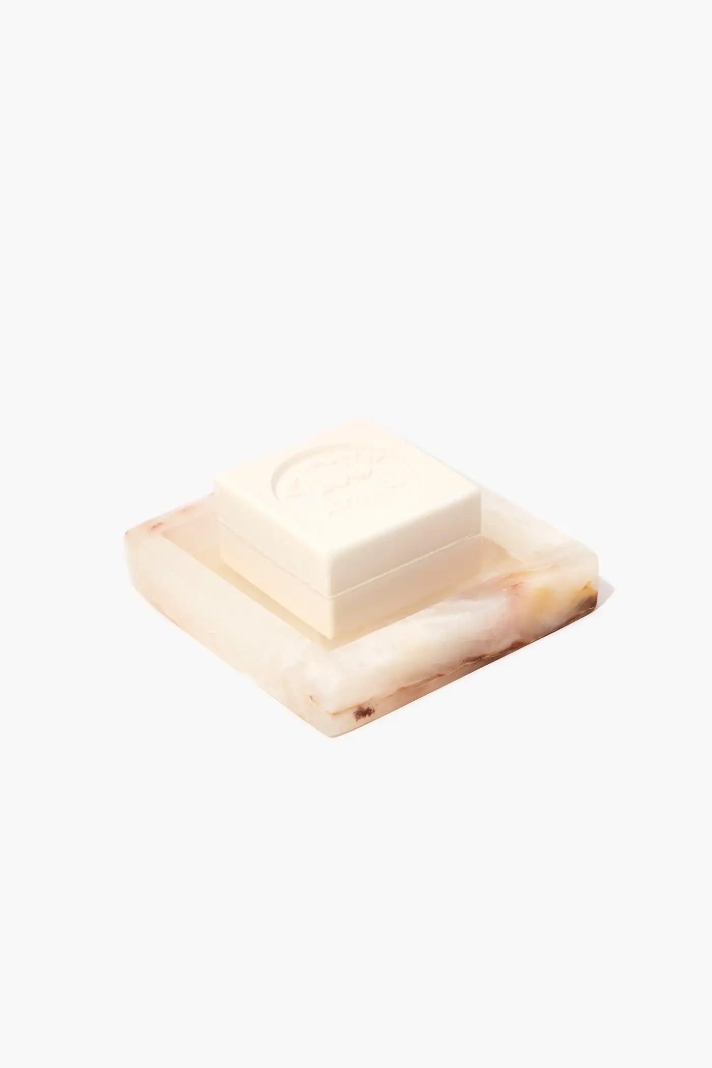 This collection includes a soap dish, toothbrush container, tray with elevated edges, tissue dispenser, and waste bin. Sourced from the onyx quarries in Carolina village, San Luis province, Argentina, the material infuses our bathroom accessories with refined elegance and a subtle feminine touch.