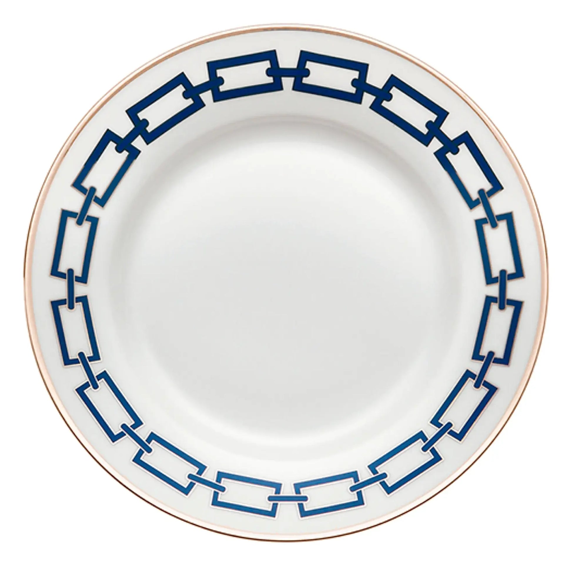 Elevate your dessert service with this striking plate from the Catene collection. Rendered in deep sapphire blue with geometric chain motifs and edged in a delicate platinum fillet, it embodies the harmony of classic form and modern design. Crafted from fine porcelain and inspired by Gio Ponti’s visionary style, this piece offers both visual impact and refined usability. Ideal for desserts, petit fours, or elegant presentation, it adds a bold but balanced accent to any table.