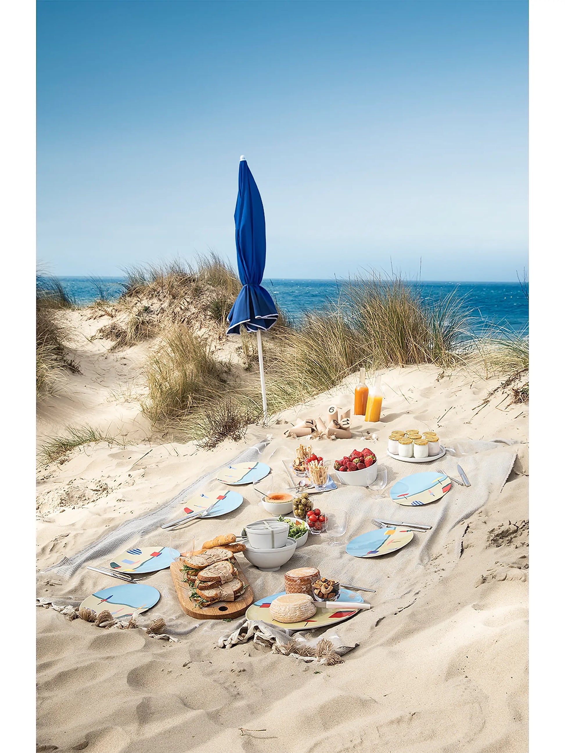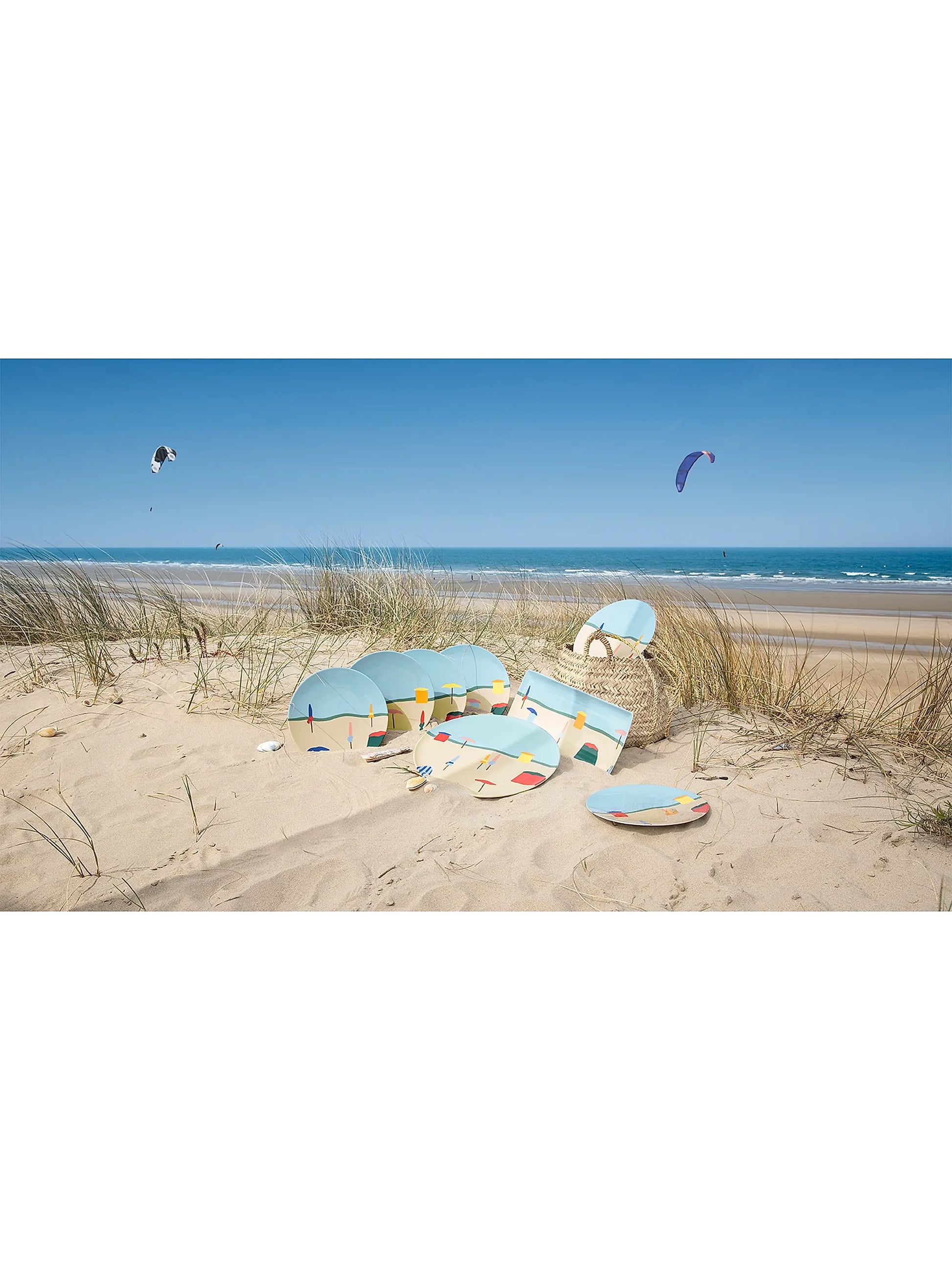 Transport your dining table to the French coastline with this Destination Mer presentation plate by Degrenne Paris. Crafted from fine porcelain, it features a vibrant, beach-inspired motif that evokes sun, sea, and relaxation. Ideal for highlighting a main dish or serving dessert, this plate is as decorative as it is functional. It arrives in a matching presentation box, making it perfect as a gift for food enthusiasts and style lovers alike. Dishwasher-safe for easy care.
