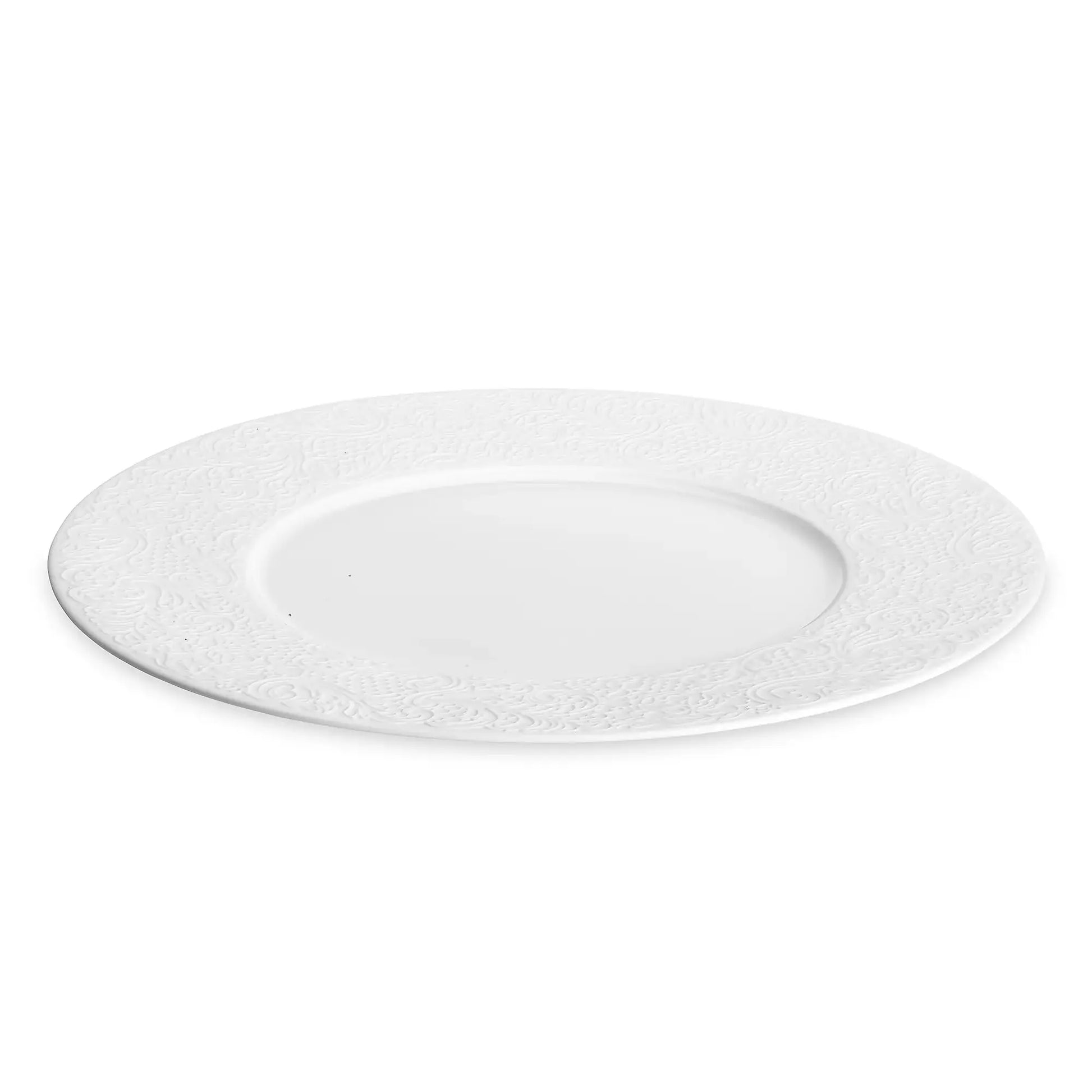 Indulge your table with the refined artistry of this 4-piece dinner plate set from the L Couture collection. Melding the pure elegance of fine Limoges porcelain with delicate lace-inspired motifs, each plate exudes grace and sophistication. The subtle textures and precise lines reflect a mastery of craftsmanship, making every dish you serve feel elevated and expressive.