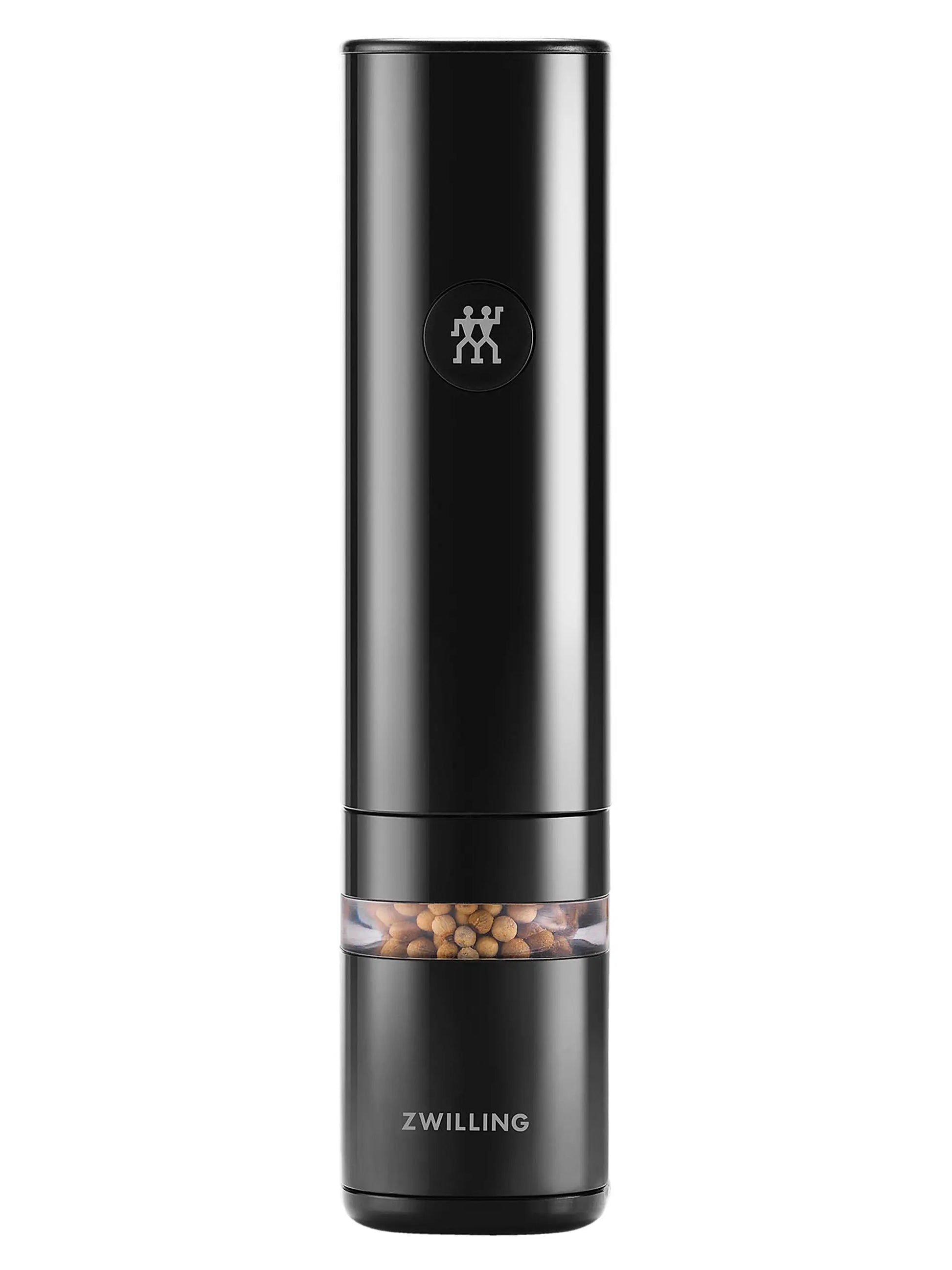 This quiet, compact salt, pepper, and spice mill boasts a powerful and durable ceramic grinder that creates consistent-sized grinds quickly and efficiently. Featuring an easy-to-use spin dial for choosing grind size from fine to coarse, and an automatic light that illuminates the area over which you are grinding, the sleek-looking mill is both elegant and highly functional.To fill the mill, simply twist the base to the unlock position, separate, and load the spices of your choosing. The 360° window lets you see what has been loaded and gauge when it is time to refill. Recharge the device with the included USB cable.