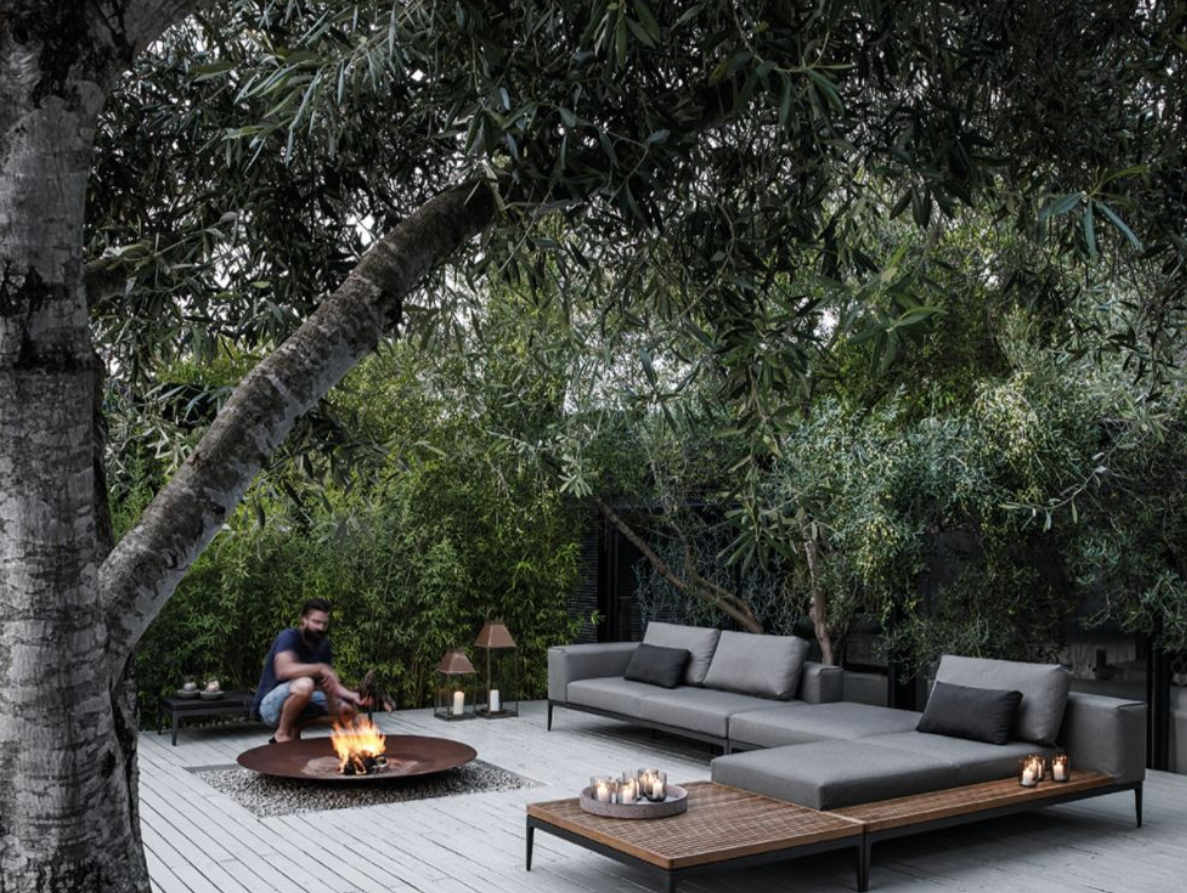 The collection features powder-coated aluminum base frames and comfortable seat and back cushions, making it a versatile and modular outdoor lounge collection. The collection is available in Meteor, White, and Java powder-coated aluminum frames with a selection of high-quality soft fabrics. The fabric is resistant to mildew and UV rays, making this system ideal for outdoor use.