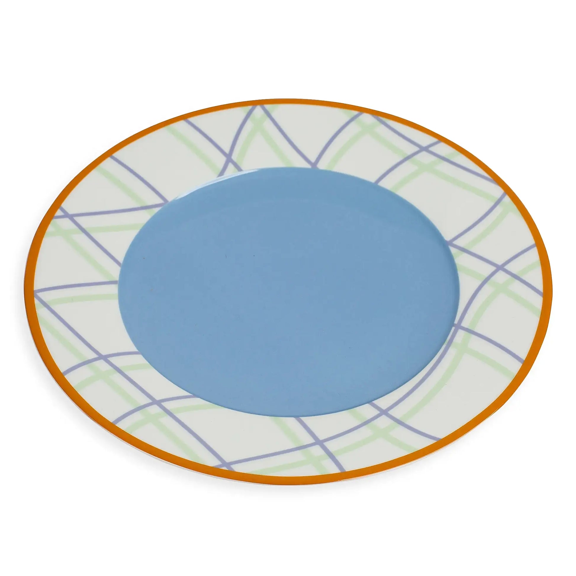 Elevate your dining experience with this Grid Pattern porcelain dinner plate set. Featuring a modern take on gingham, the soft pastel lines intersect over a crisp white base to create a playful yet elegant design. Crafted in fine Portuguese porcelain and glazed for durability, these plates are as practical as they are beautiful.