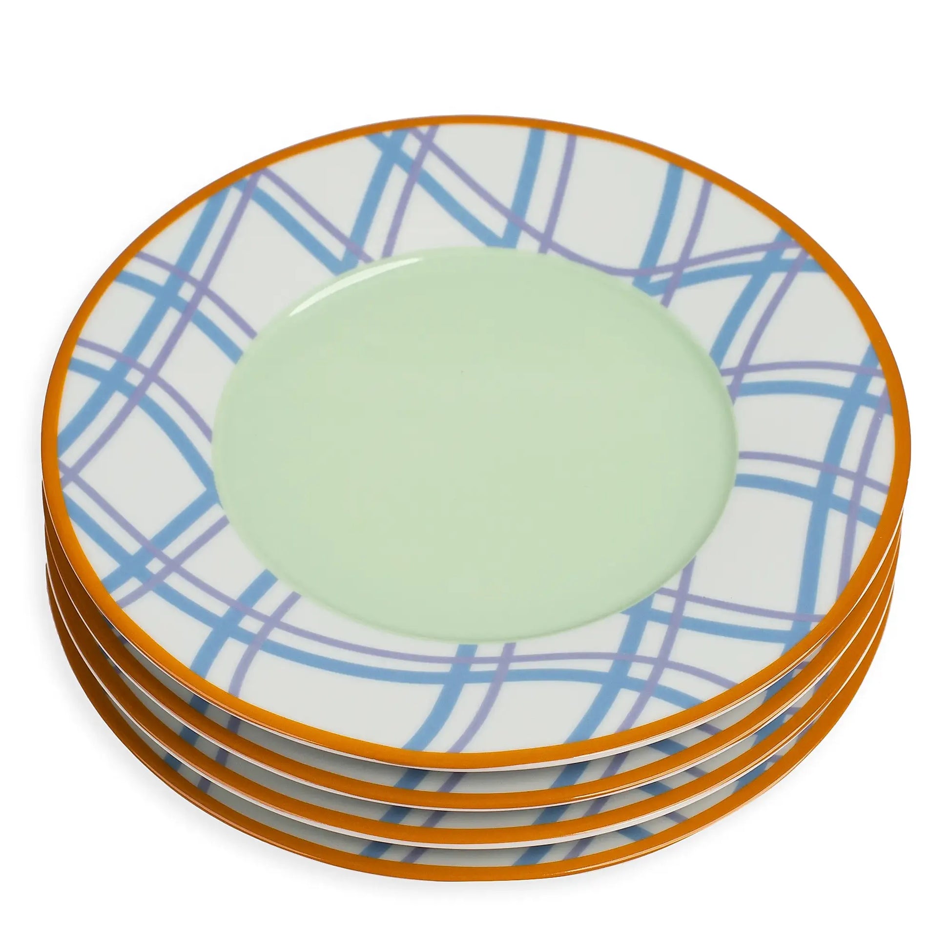 Add a playful and artistic twist to your table setting with this Grid porcelain salad plate set. Featuring a bold yet soft-toned plaid-inspired pattern, these plates merge classic form with a modern edge. Crafted in premium Portuguese porcelain and finished with glazing and hand-applied details, each plate is made to delight from breakfast through dessert.