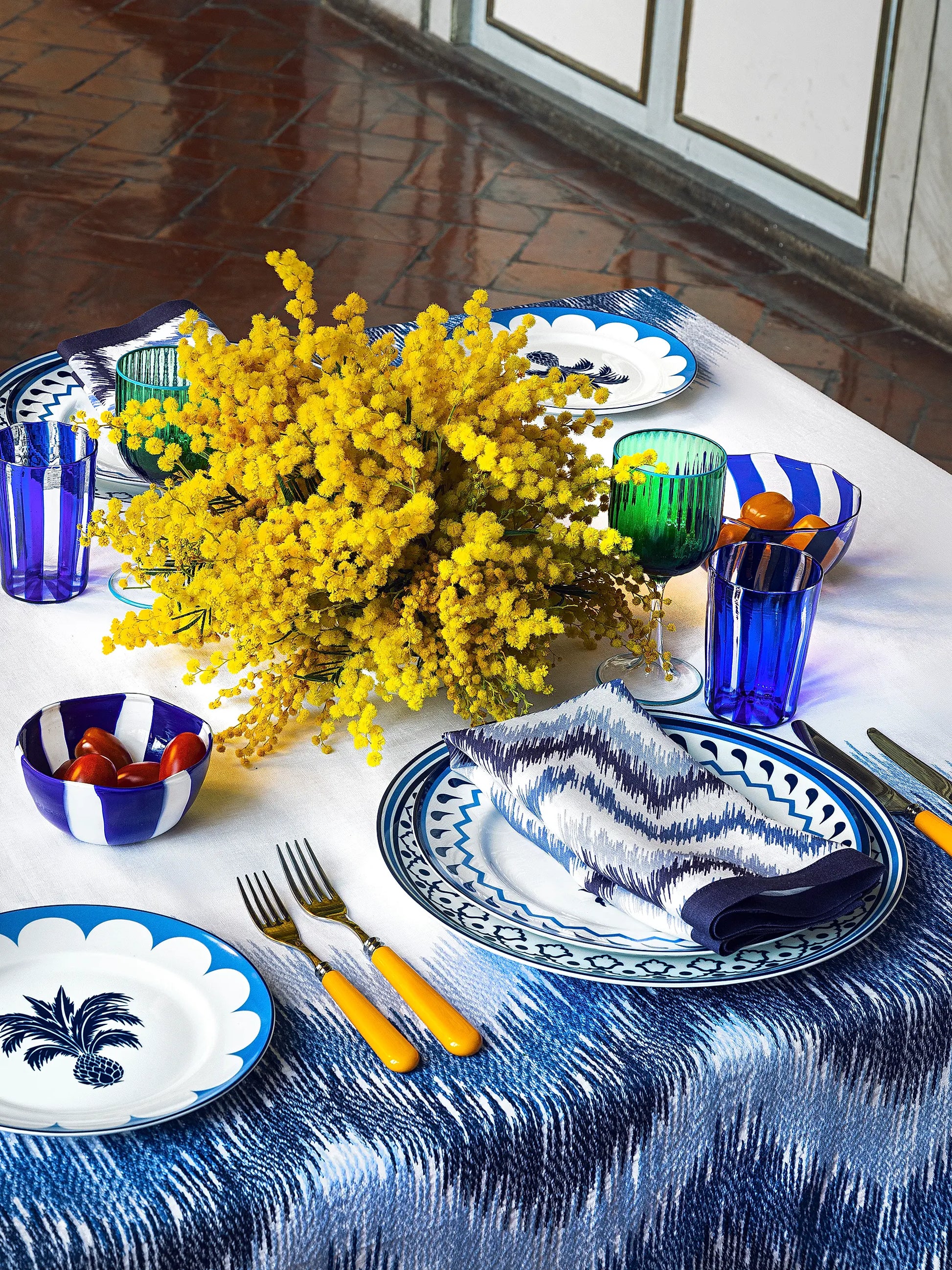 Transform your dining presentation with the vibrant elegance of the Jaipur Porcelain Charger Plate (Pink & Blue). Crafted from fine porcelain, this charger features a bold central motif surrounded by decorative border patterns in contrasting pink and blue tones. Inspired by journeys and pattern work, the aesthetic evokes visual depth and cultural richness. Positioned beneath dinnerware, it enhances every course with striking color and detail—ideal for styled tablescapes, special dinners, or elevated everyday use.
