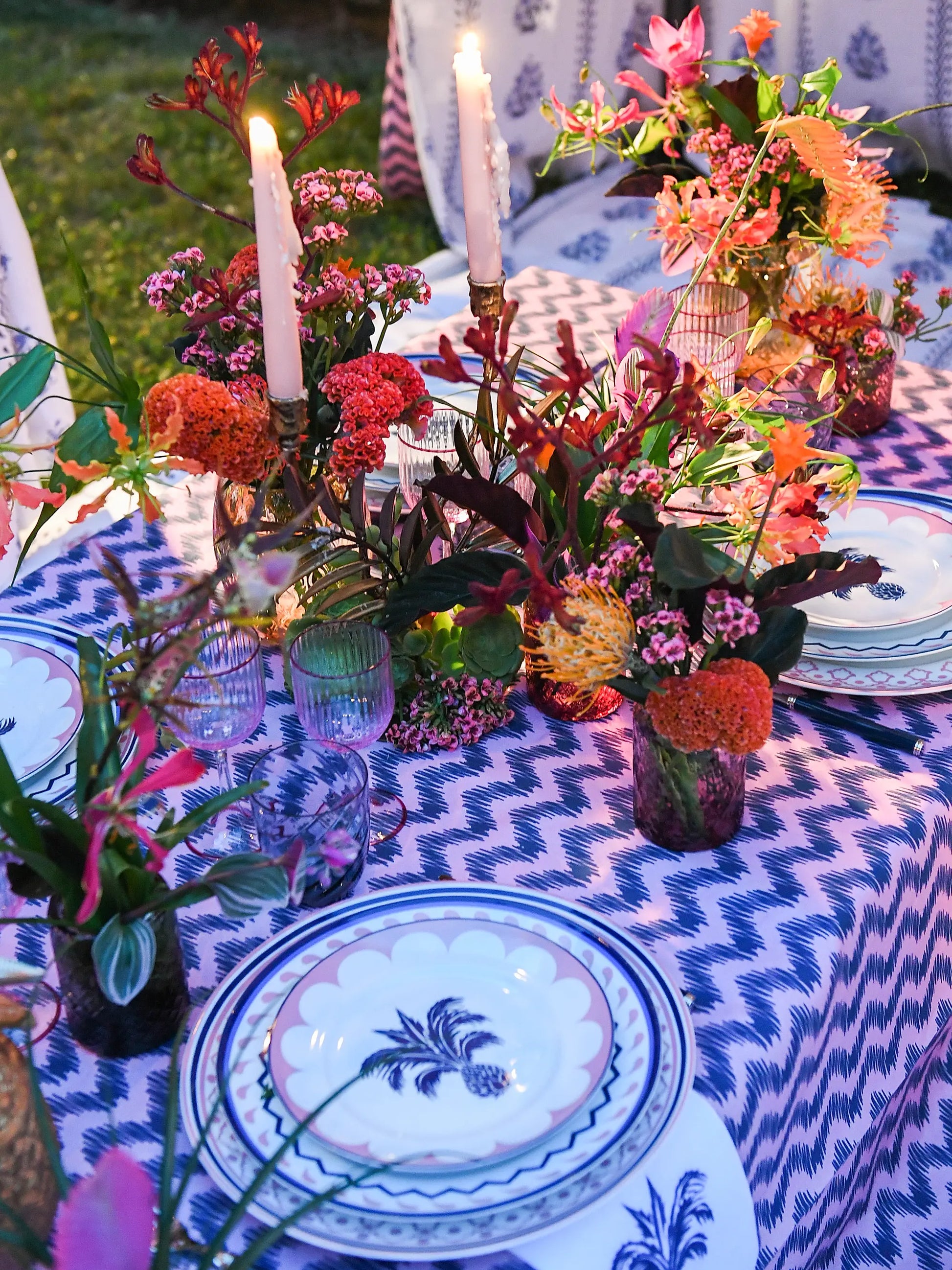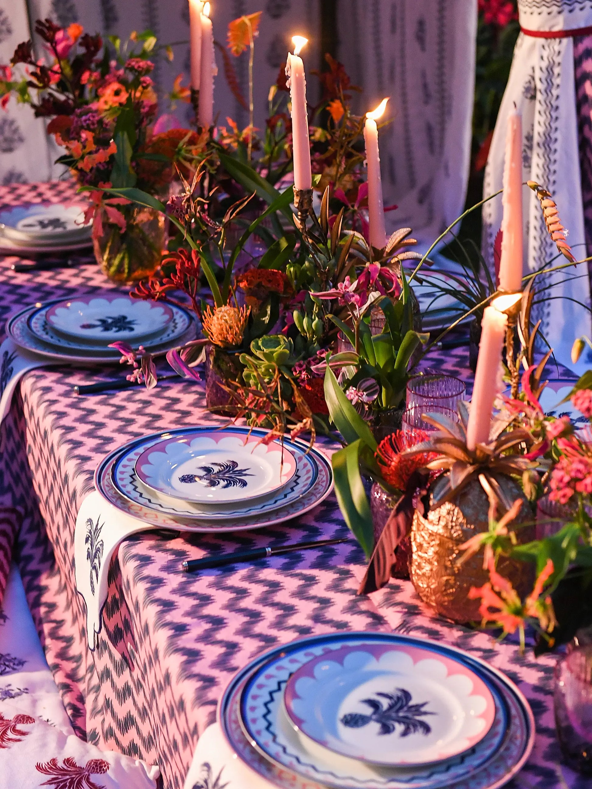 Jaipur Porcelain Dessert Plate Set (2-Piece, Pink & Blue)