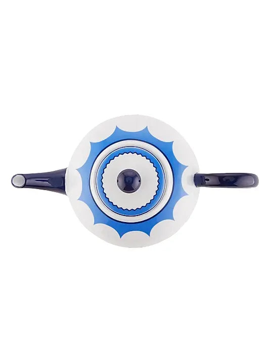 Aquazzura's Jaipur collection was created through a love of travel, pattern, geometry, and adventure. The floral motifs are inspired by ancient temple drawings, paired with chevrons and stripes for a contemporary layered tabletop twist. Jaipur evokes the scents and atmospheres of a journey to India, one of Edgardo Osorio's most-loved destinations. Made of high-quality porcelain, the timeless design of the Jaipur teapot is embellished with exquisite hand-crafted details.