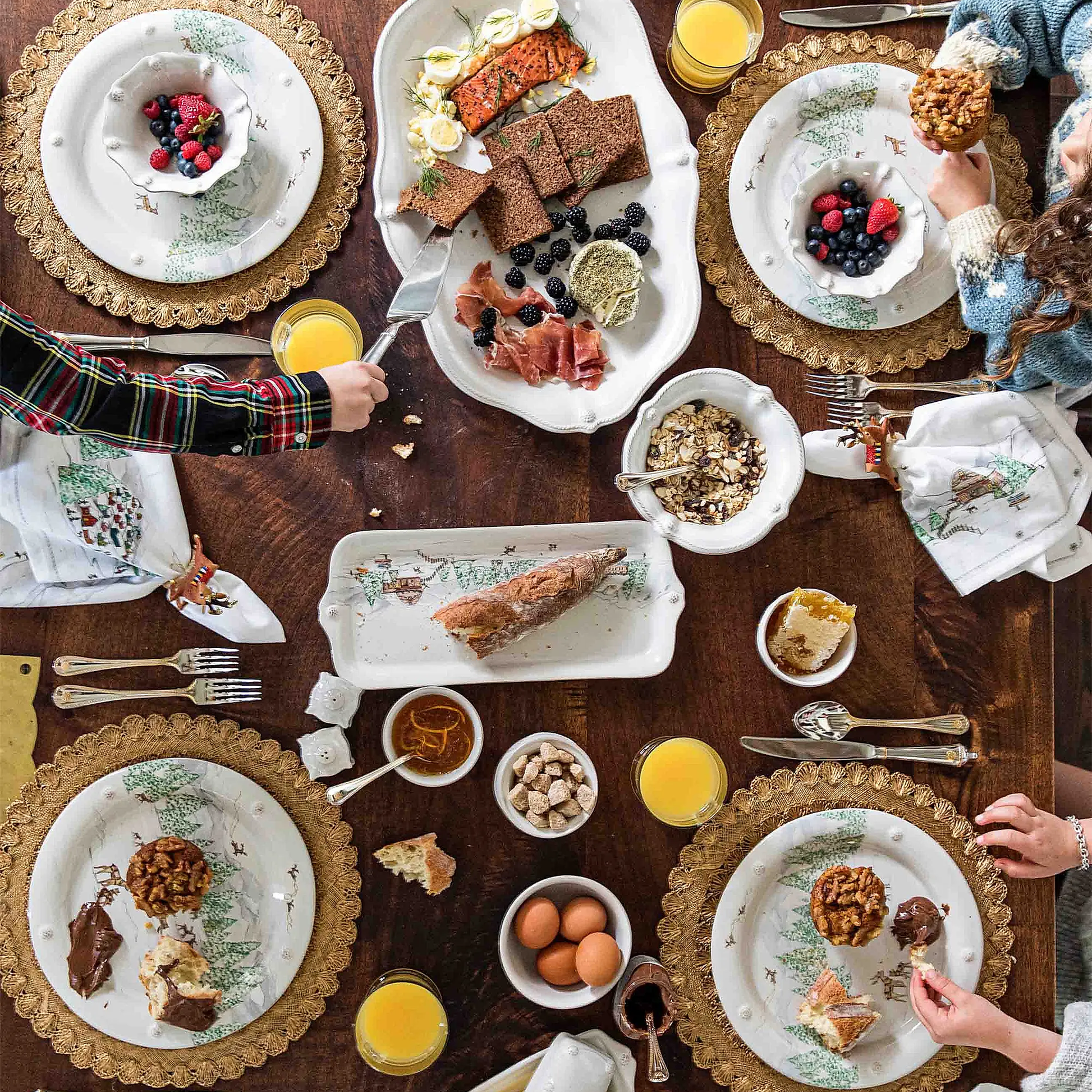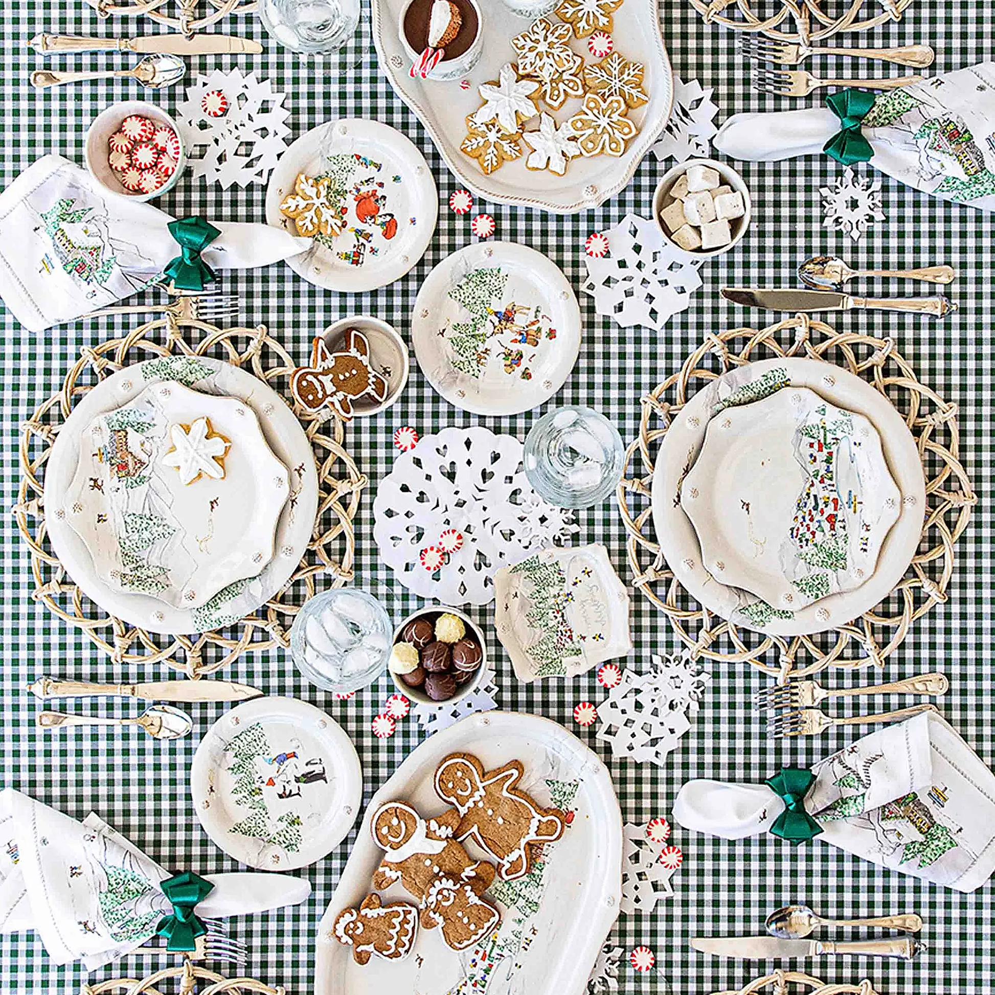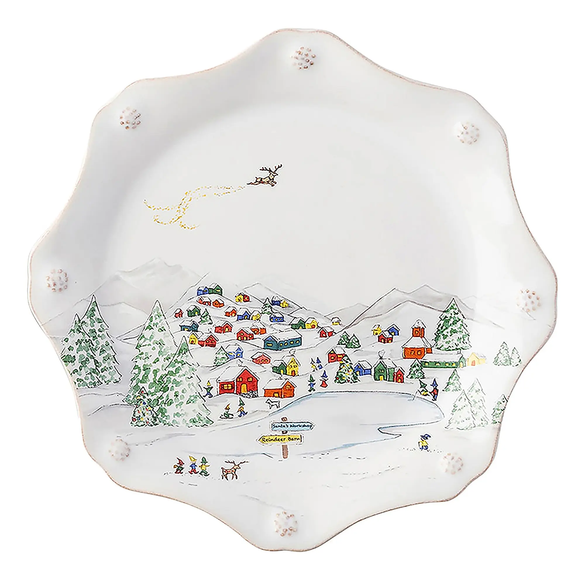 Elevate your holiday dining experience with the Juliska Berry & Thread North Pole 16-Piece Dinnerware Set. Featuring whimsical hand-painted scenes of evergreen forests, flying reindeer, and snow-dusted cottages, this festive collection transforms every meal into a seasonal celebration. Crafted from premium porcelain, the set is elegant yet durable. Ideal for holiday dinners, gifting, or collectors, this dinnerware set brings timeless charm to your table settings.