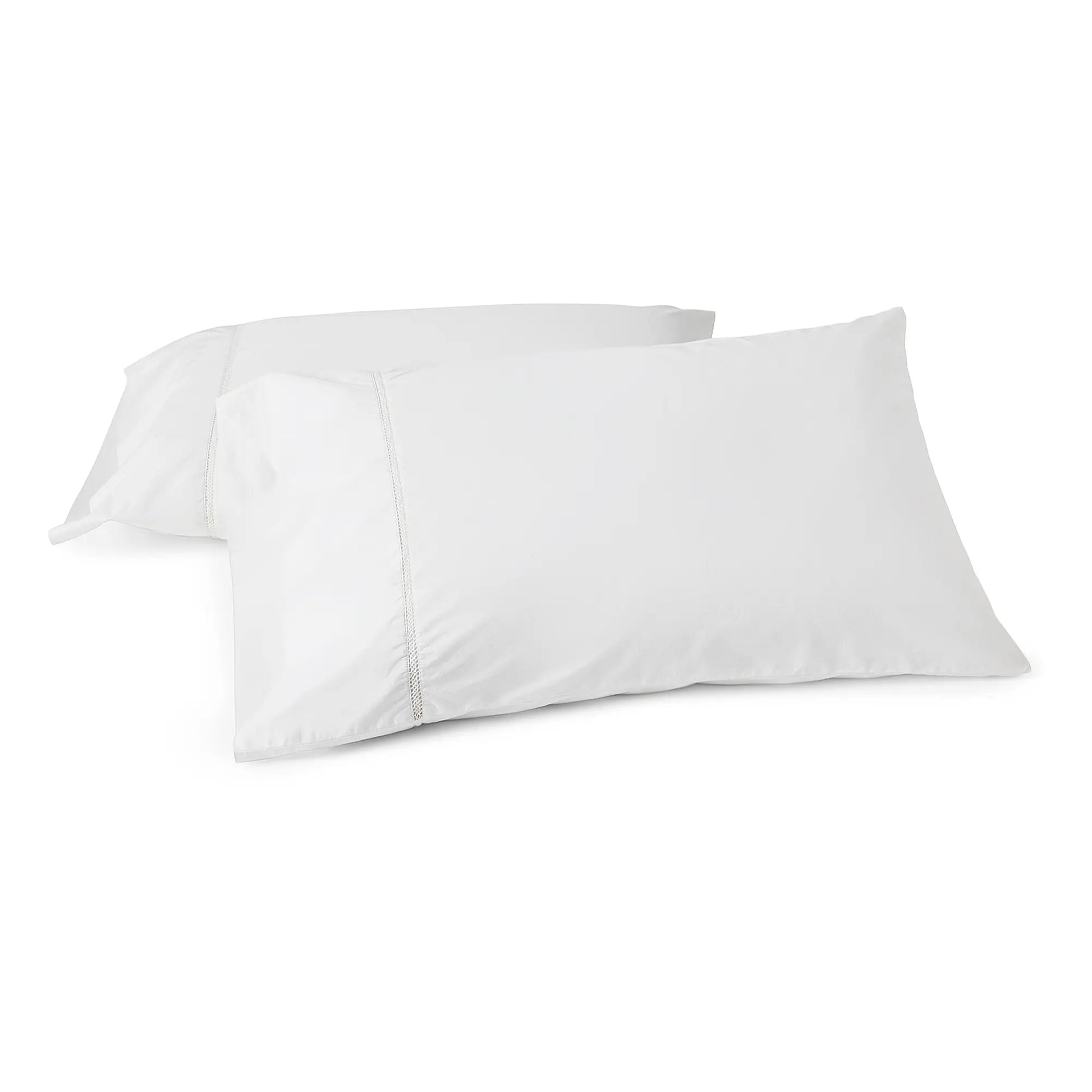 Introduce understated elegance to your sleep space with this refined pillowcase set. A delicate diamond-lattice trim is inset between the main fabric and cuff, lending a subtle, airy decorative accent. Made from crisp, organic percale cotton, the fabric offers breathability and a cool, matte finish that feels fresh night after night. This pair blends durable comfort with a soft, minimalist aesthetic, ideal for modern and classic bed settings.