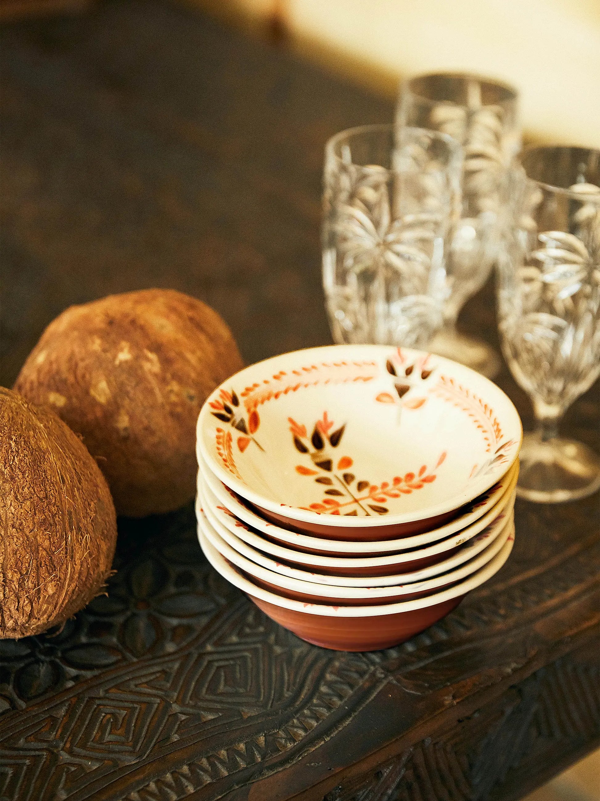 Add an artistic flourish to your table with the Macondo hand-painted ceramic bowl. Each piece features freehand brushwork inspired by archive prints, creating a vibrant, one-of-a-kind motif. Finished with a smooth glaze, this bowl brings both character and function to your dining setup.