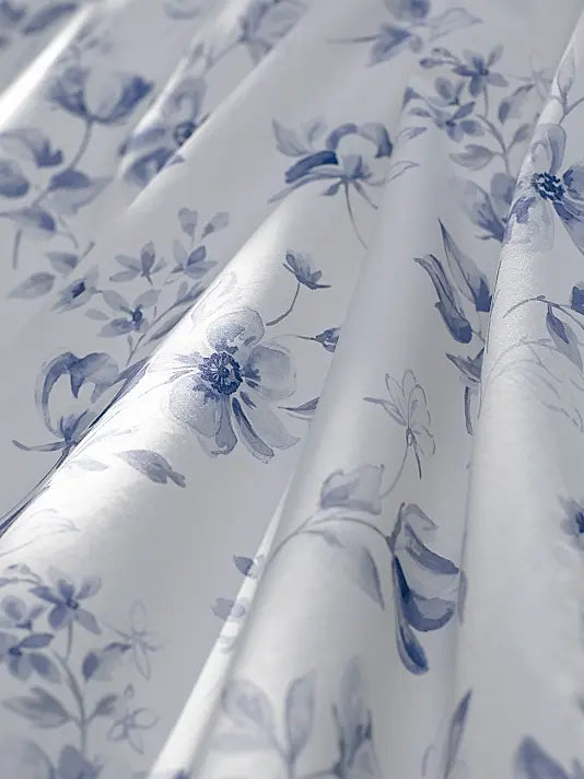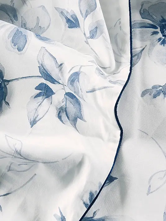 The Passé Présent Flat Sheet in Blue offers a timeless aesthetic with its classic floral design coordinated with a subtle striped pattern. Crafted from 100% long-staple combed cotton percale, this flat sheet provides a crisp, cool feel that's perfect for year-round comfort. The 200-thread count ensures durability and a smooth texture, while the 7" hemline adds a touch of elegance. Made in France, this flat sheet combines traditional design with luxurious quality.