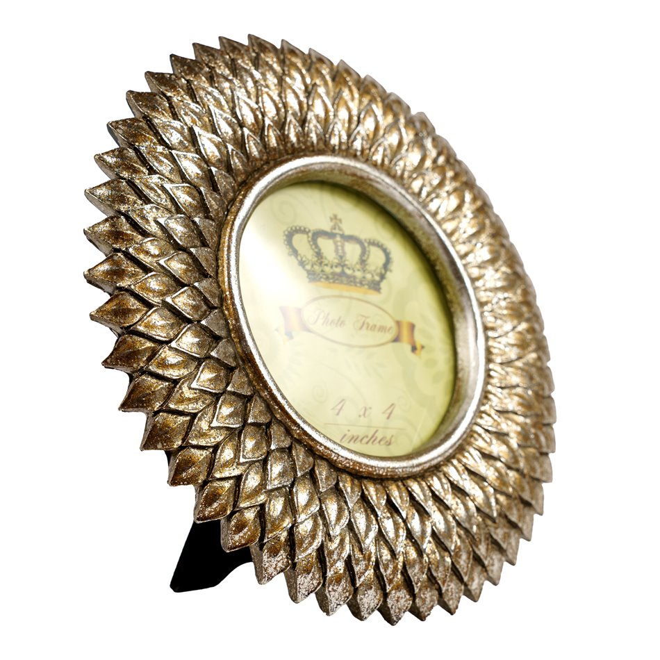 Photo frame Sun, gold color, 10x10cm photograph, D19.5x2cm