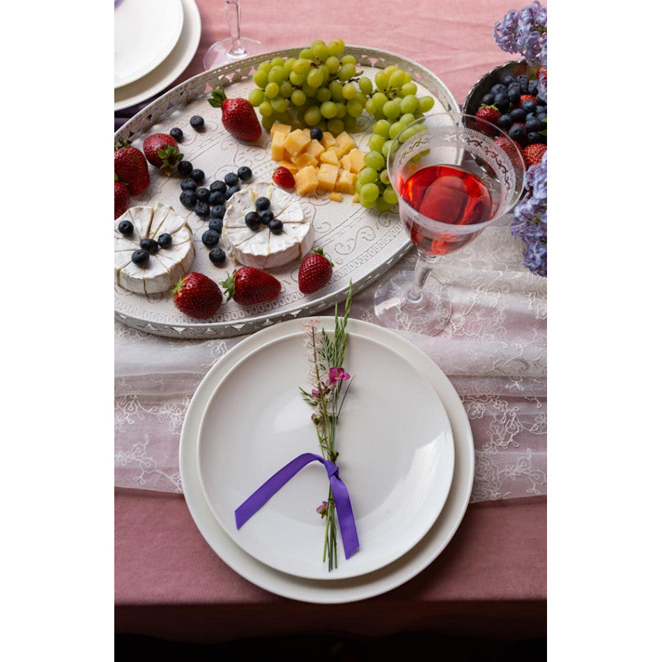 The pure brightness of the white hue and the elegantly languid shape magnificently highlight the china plate, which can be conveniently placed on the table for arranging treats or some exquisite surprise. A great supplement to the table arrangement and everyday life!