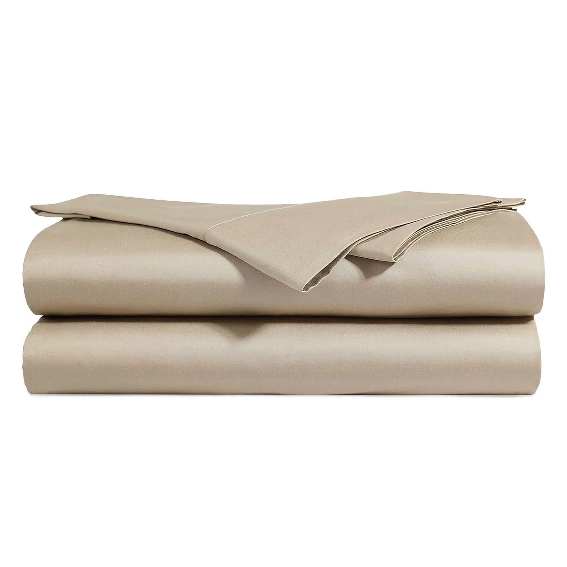 Experience unparalleled comfort with the Premium Bamboo Sheet Set in Taupe. Crafted from 100% viscose derived from bamboo, these sheets offer a silky-smooth texture that is both breathable and hypoallergenic. The taupe color adds a touch of elegance to any bedroom decor. Designed to fit mattresses up to 38 cm deep, this set includes a fitted sheet, two pillowcases, and an optional top sheet, providing everything you need for a restful night's sleep.