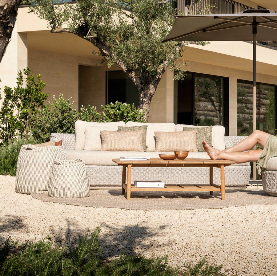 Experience the perfect blend of sophisticated design and outdoor durability with this Outdoor Sofa. Designed with a graceful round silhouette, this statement piece brings elegance to terraces, patios, and poolside retreats.