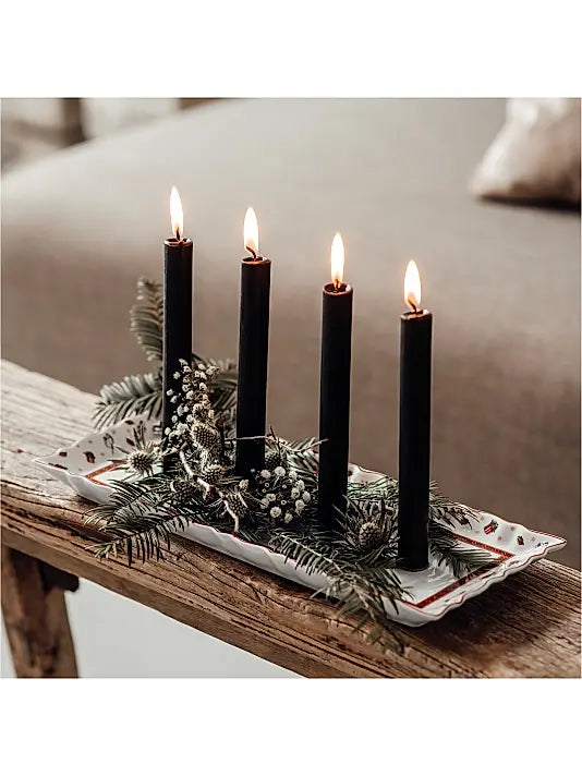 The Toy Delight Collection adds a traditional touch to your holiday table with its subtle scalloped design. The design will evoke nostalgia for those young and old, featuring Christmas toys and trees, cookies, and other holiday treats in classic holiday hues. Dishwasher and microwave safe.