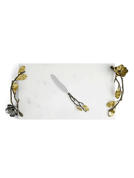 From the Vintage Bloom Collection. Michael Aram’s cheeseboard and knife set evokes a sentimental interpretation of nature with mixed metals and enamel that capture a sense of nostalgia for 1940’s glamour.