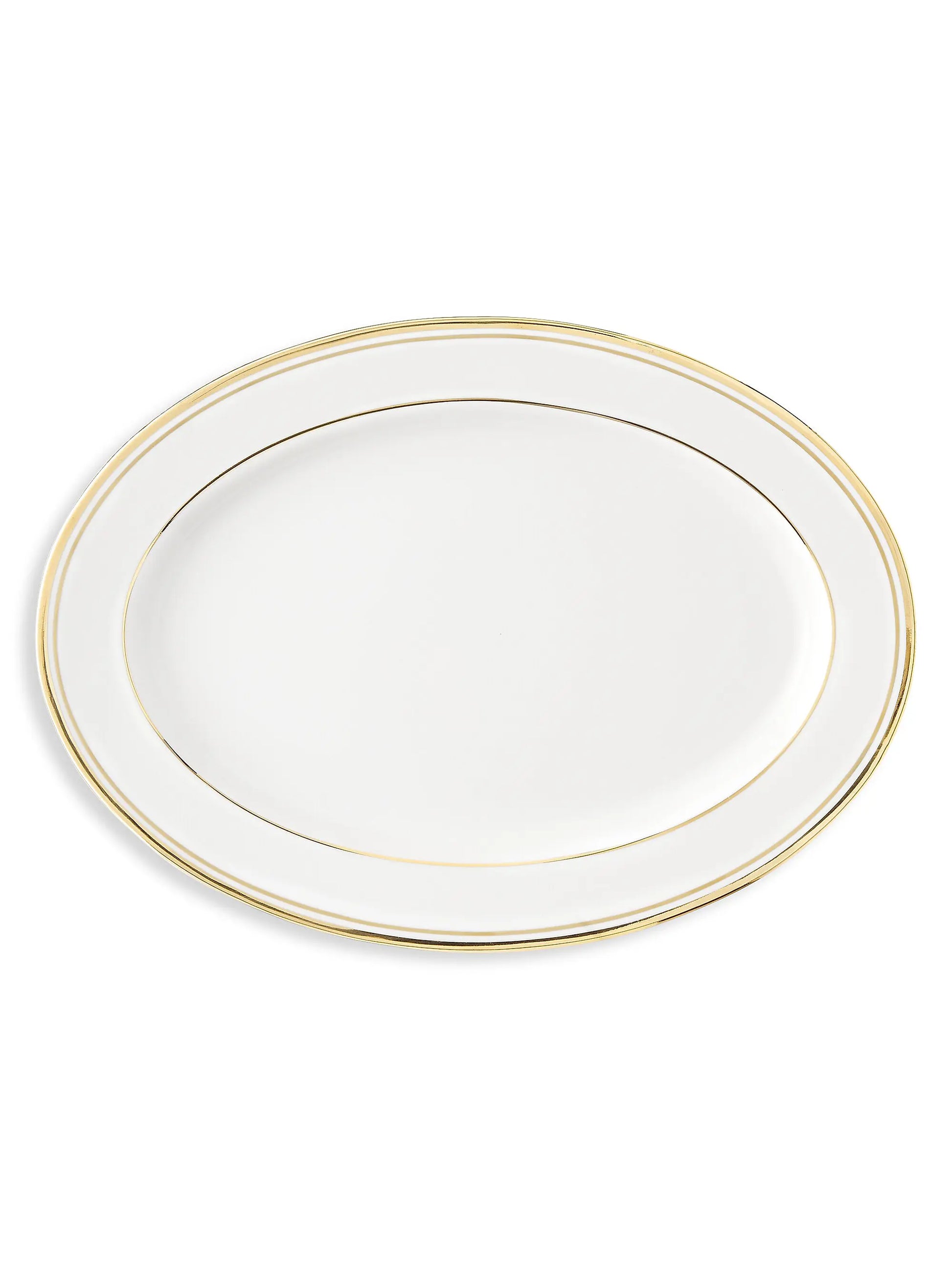 This fine porcelain platter is hand-painted with matte and polished bands of 24K gold, elegantly complementing any of our timeless dinnerware patterns.