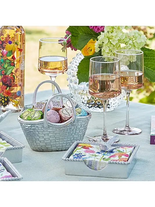 Add rustic charm to any spread with Mariposa's Woven Basket nut dish. Crafted to resemble a classic woven basket, this dish is perfect for serving nuts, small bites, or candies. Add faux flowers to double as a beautiful centerpiece.