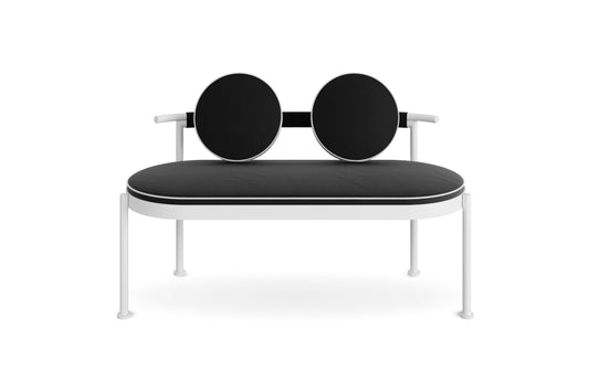 Black Steel Outdoor Bench with Water-Resistant Fabric Backrest – Two-Seater