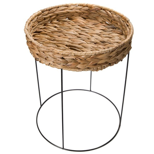 Elo L Side Table – Natural Water Hyacinth & Metal Round Accent Table