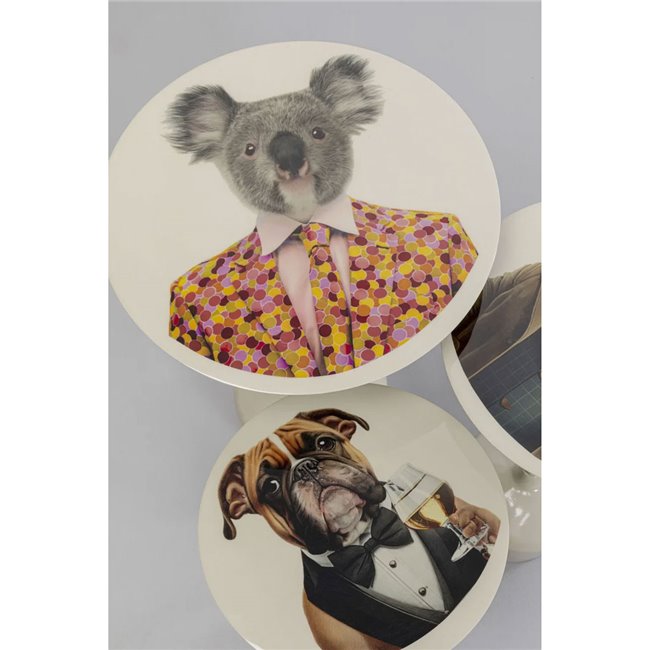 Add charm and creativity to your interior with this 3-piece Business Animal side table set. Each table features a playful sculptural base shaped like animals dressed in business attire, making them a standout decorative element in any room. Crafted from durable polyresin and supported with sturdy metal tabletops, these tables are not just fun but also functional for placing drinks, décor items, or everyday essentials. Perfect for living rooms, lounges, home offices, or as unique conversation pieces.