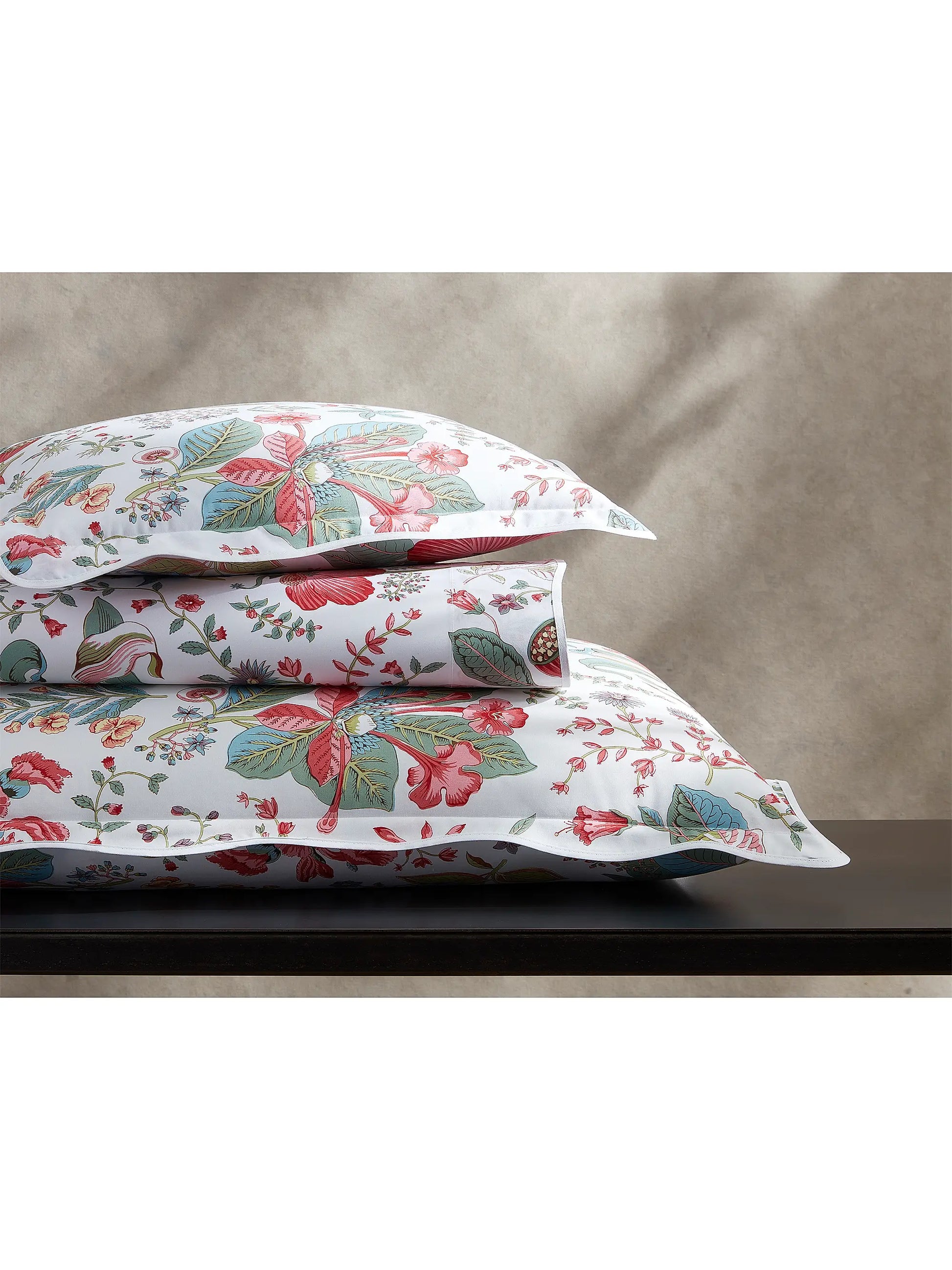 The Pomegranate Percale Sheet Set in Prussian Blue brings a touch of timeless elegance to your bedroom. Inspired by an 18th-century botanical design from Schumacher’s archive, this vibrant pattern is printed on Matouk's 500-thread count Luca Egyptian cotton percale, known for its crisp, cool feel and exceptional durability. The set is finished with a subtle scalloped edge and white tape, combining classic artistry with modern craftsmanship.